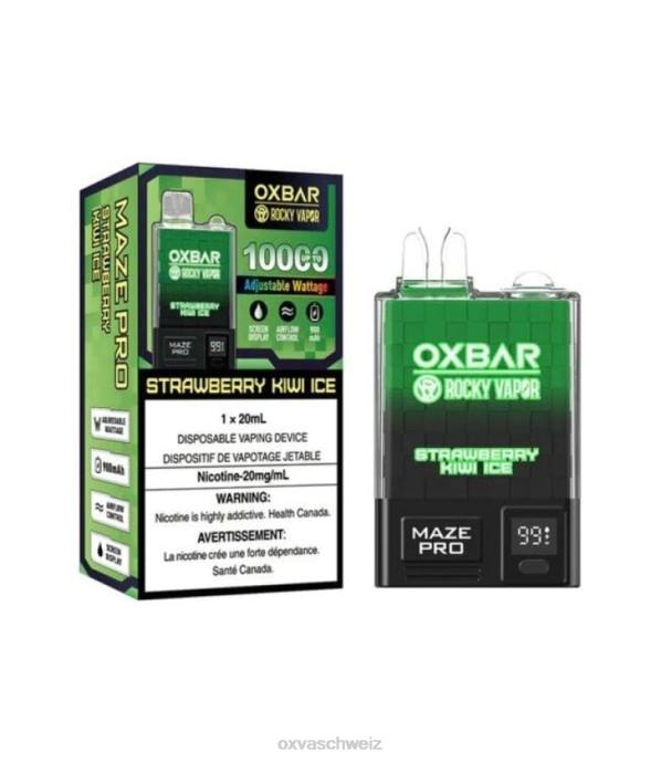 Tauchen Sie ein in das lebendige und erfrischende Dampferlebnis mit dem Oxbar Maze Pro Strawberry Kiwi Ice Einweg-Vaporizer. ein Premiumprodukt von Rocky Vapor. Dieser Vape ist auf erwachsene Tabakkonsumenten zugeschnitten und kombiniert den Nervenkitzel fruchtiger Aromen mit dem Komfort eines Einweggeräts.